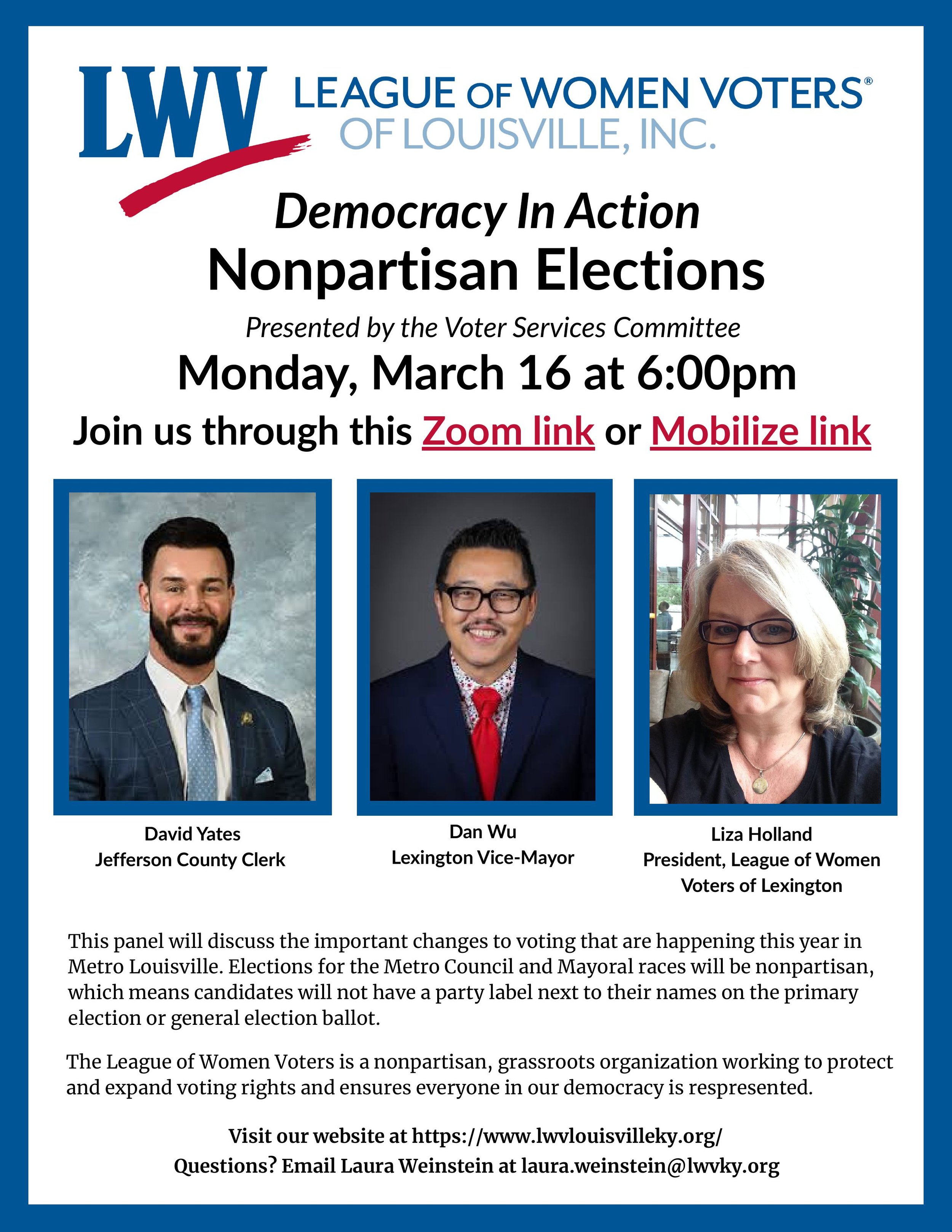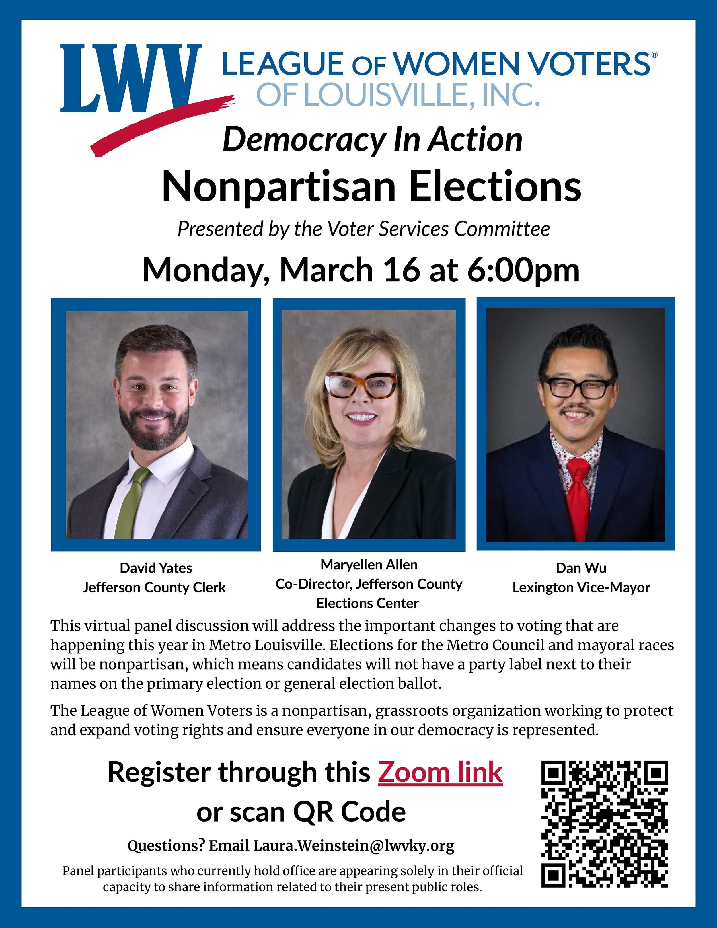 As a non-profit, non-partisan organization, the League does not support or oppose candidates or political parties. LWV Louisville is an organization fully committed to diversity, equity, and inclusion in principle and in practice.
